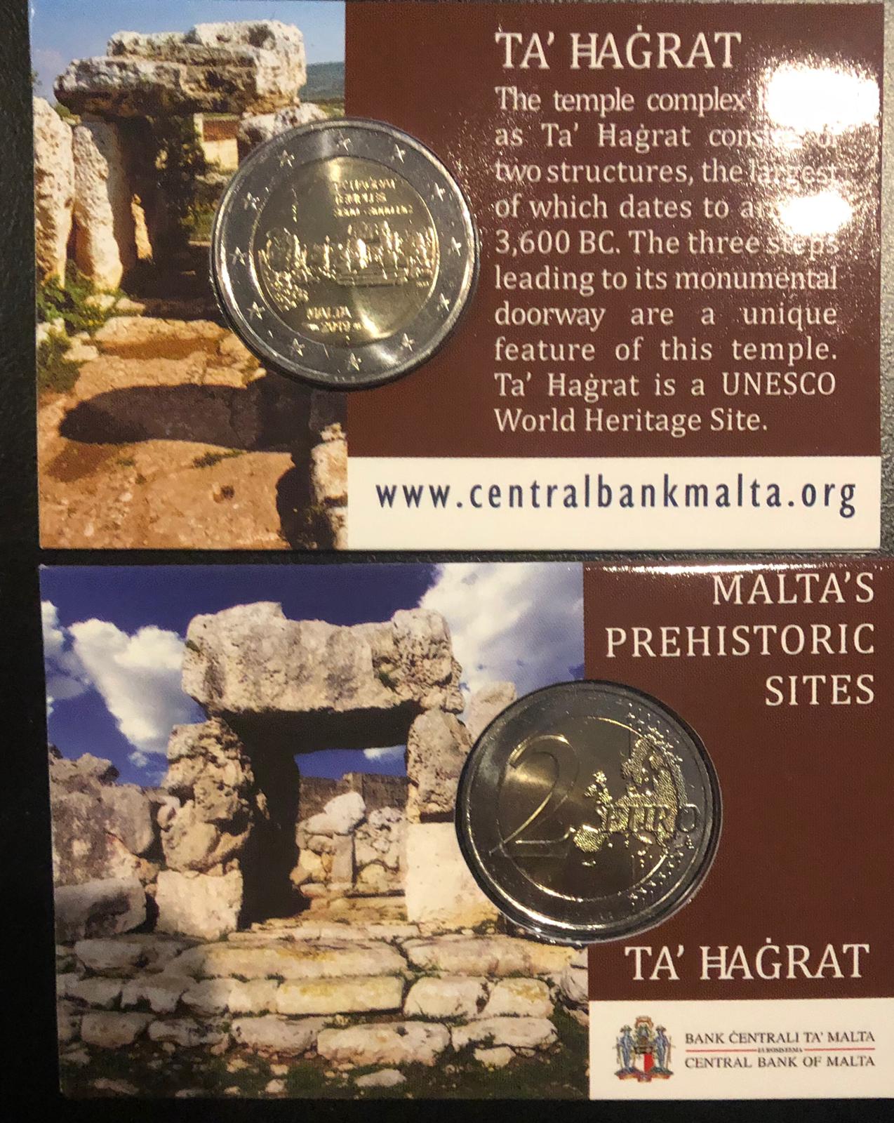 2€ commemorativo Malta 2019 2019 “Ta Hagrat” in coincard ufficiale di zecca con il segno di zecca Cornucopia