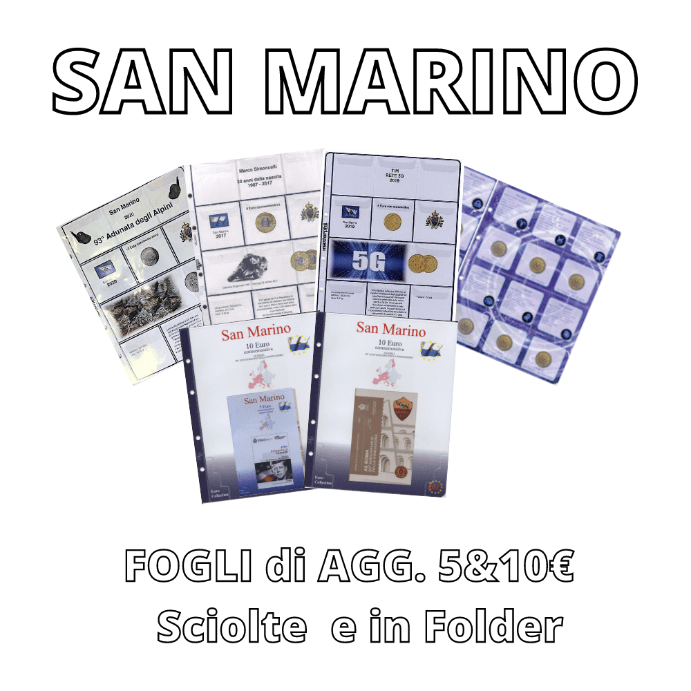 Pagine di aggiornamento in Cristal trasparente con stampe create appositamente per le serie 5 & 10 Euro sciolte e in folder emesse dalla Repubblica di San Marino .