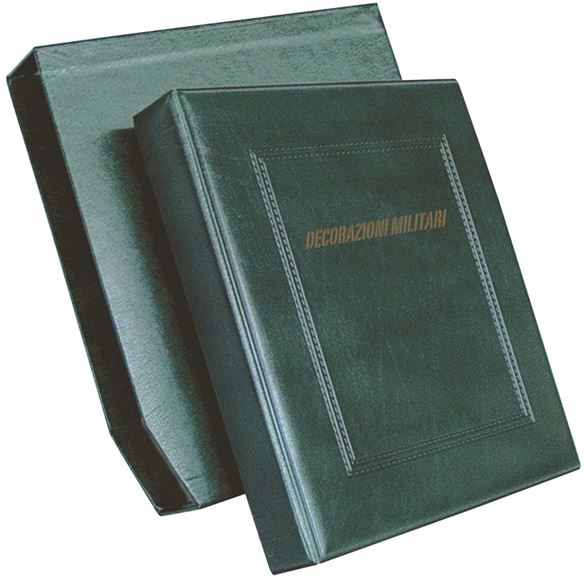 Raccoglitore per decorazioni militari,copertina in plastica stampata in oro,completa di custodia di cartone rivestito.