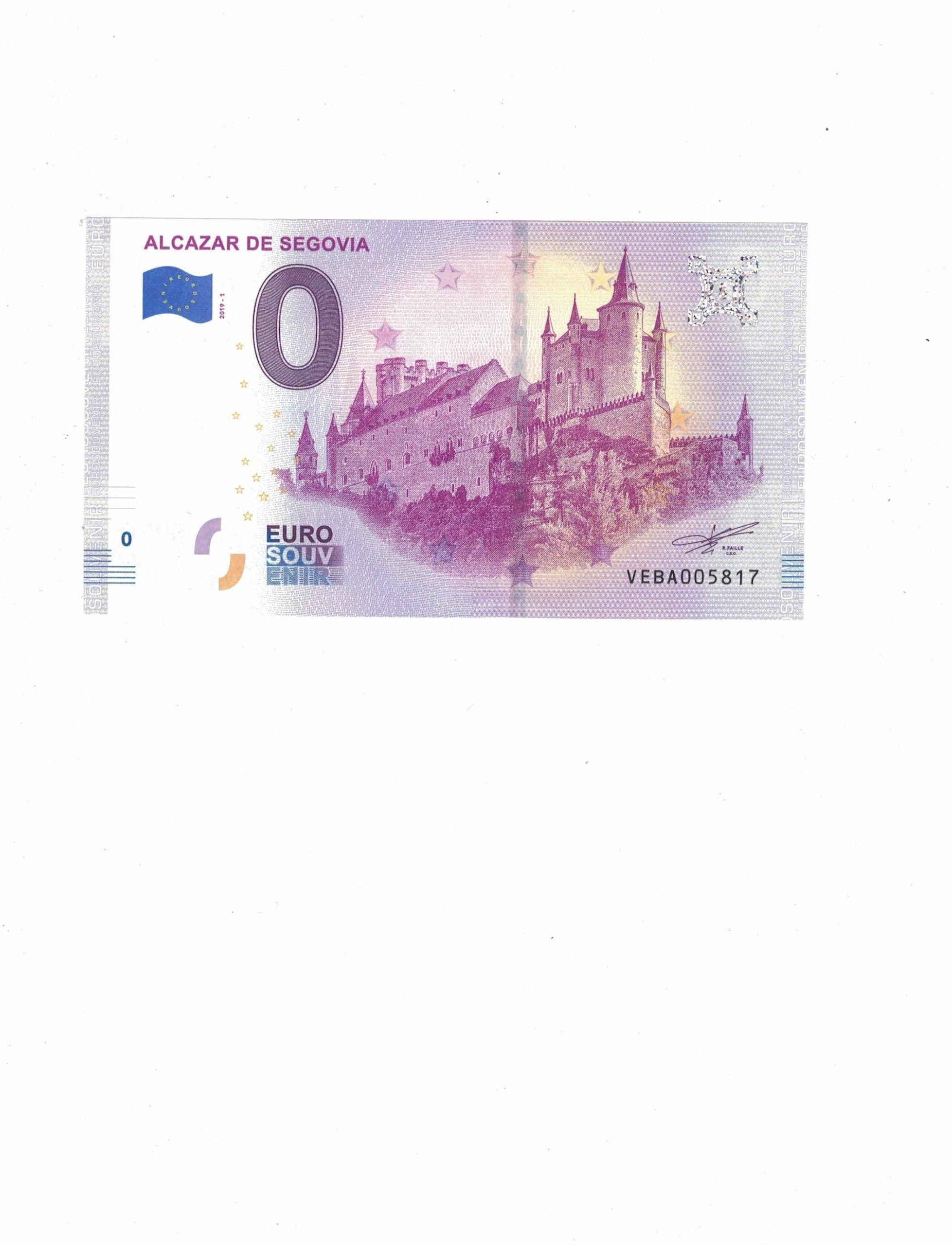 Banconota 0 Euro Souvenir dedicata a Alcazar de Segovia, Spagna