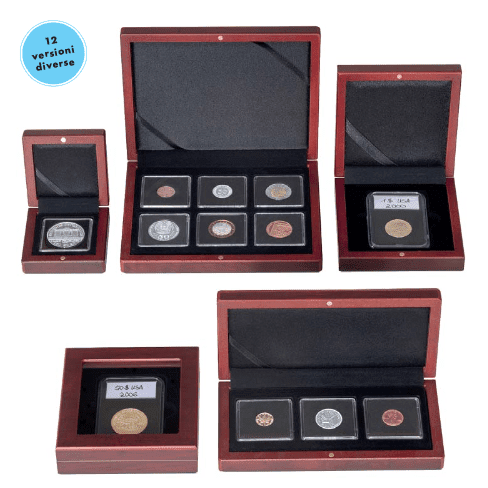 I nostri astucci VOLTERRA sono disponibili anche per capsule portamonete quadrate o rettangolare (QUADRUM, QUADRUM XL, QUICKSLAB, ecc.) Potete scegliere fra 12 diversi modelli per conservare su misura e in modo elegante da 1 a 9 capsule. L’imbottitura interna del coperchio è provvista di un nastrino in raso per conservare eventuali certificati o note.