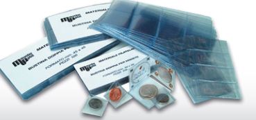 Bustina doppia a due posti contrapposti in cristal trasparente,spessore 0,14 con angoli a 90°. Confezioni da 100 pezzi in strisce da 4 da dividere.