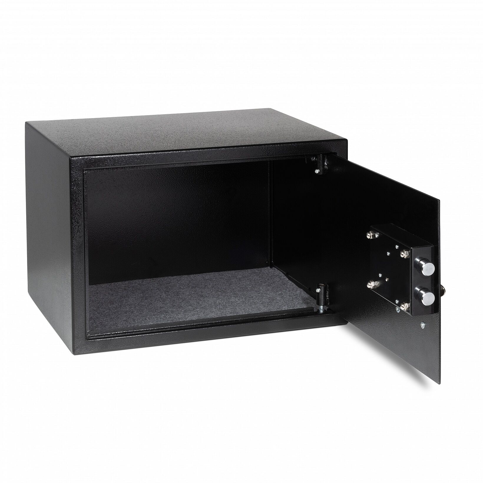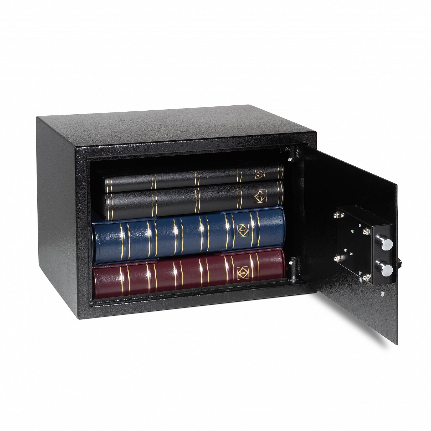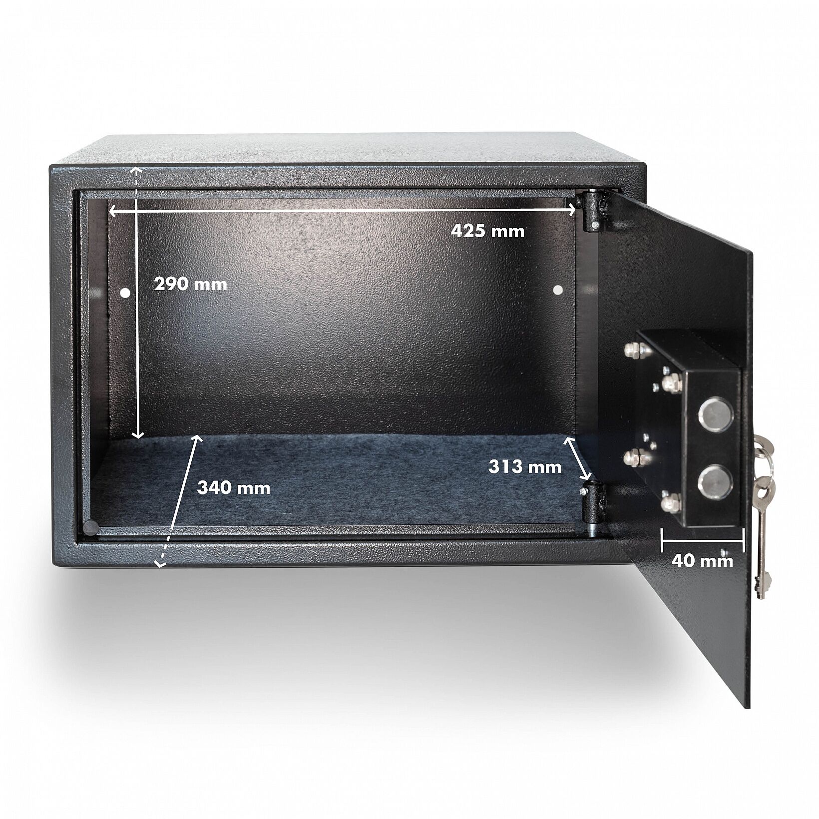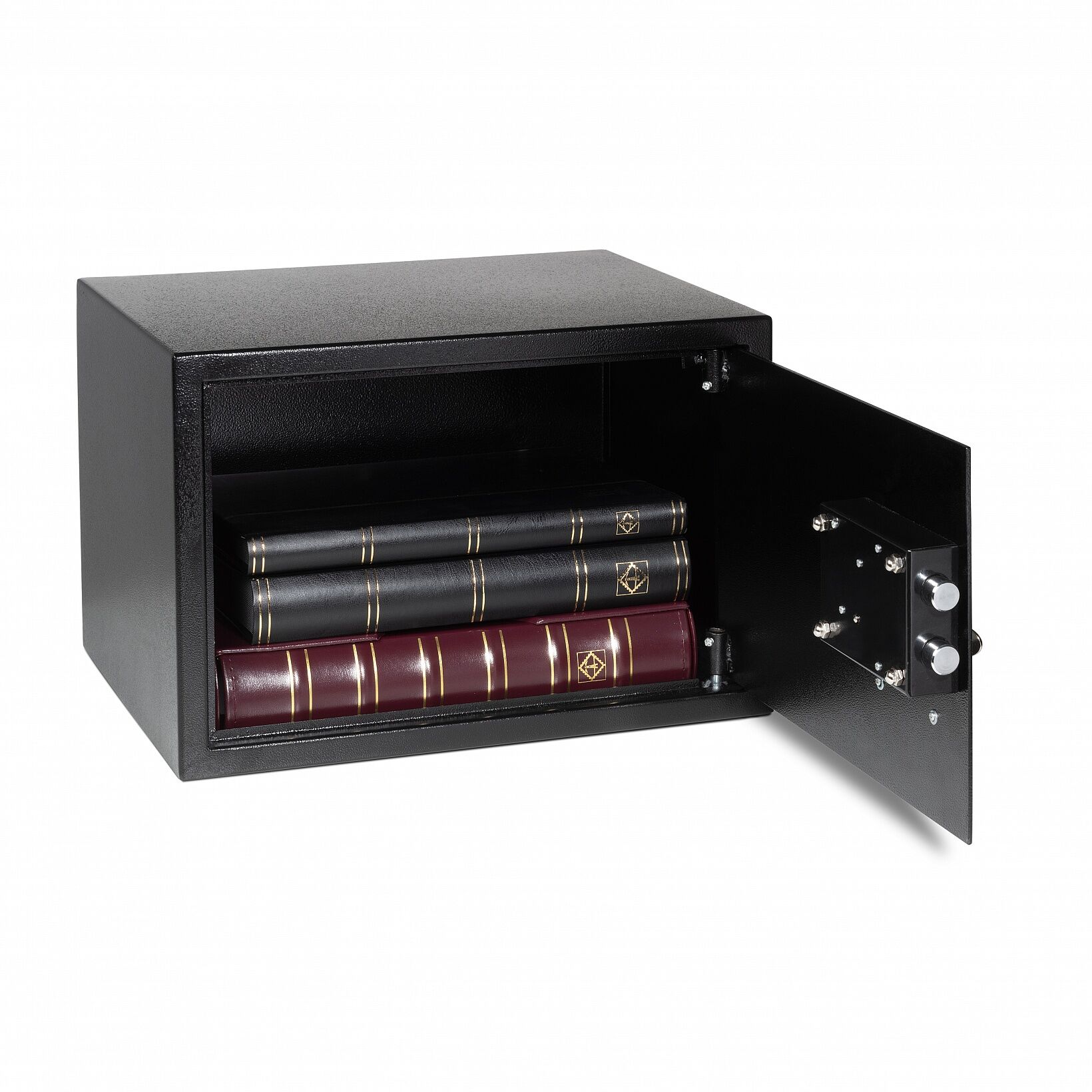 Grazie alle dimensioni interne adattate, la cassaforte puoÌ€ ospitare raccoglitori A4 per ufficio, 3 raccoglitori ad anelli GRANDE con la custodia protettiva, classificatori, cartelle DP, DE o DL e molto altro ancora. Un morbido tappetino in feltro sul fondo della cassaforte protegge i vostri effetti personali da graffi o danni simili. Sia nella parete posteriore che sul fondo della cassaforte sono presenti due fori per l’inserimento di viti, che garantiscono il fissaggio a parete, all’armadio a muro, al pavimento o su uno scaffale (materiale di fissaggio incluso). Sono incluse in dotazione 2 chiavi a doppia mappa con numeri individuali, che si adattano solo alla serratura integrata.