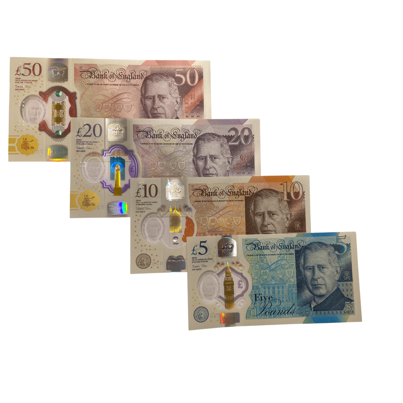 VALUTA: SERIE 4 BANCONOTE 5/10/20/50 POUNDS