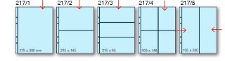 Inserti trasparenti in K211 con foratura per 4 anelli passo 80mm,ideali sia in filetelia che per cartamoneta,cinque tipi di formati,tasca intera,diviso in due orizzontale per busta primo giorno,aa due verticale per canet,a tre spazie per cartamonta ed infine diviso in quattro,sarà facile trovare la giusta collocazione per qualsiasi tipologia di collezione.