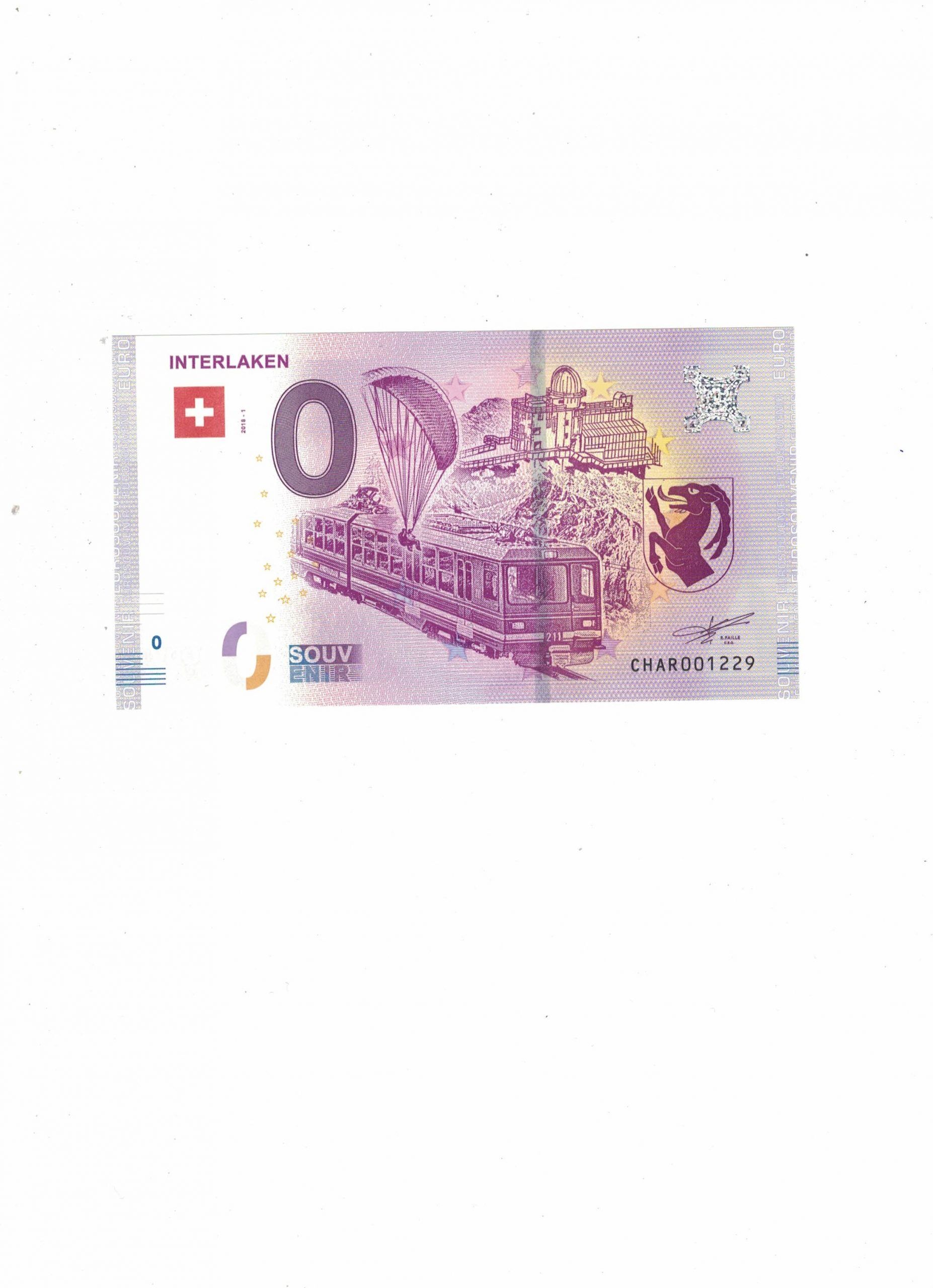 Banconota 0 Euro Souvenir dedicata a Interlaken , Svizzera