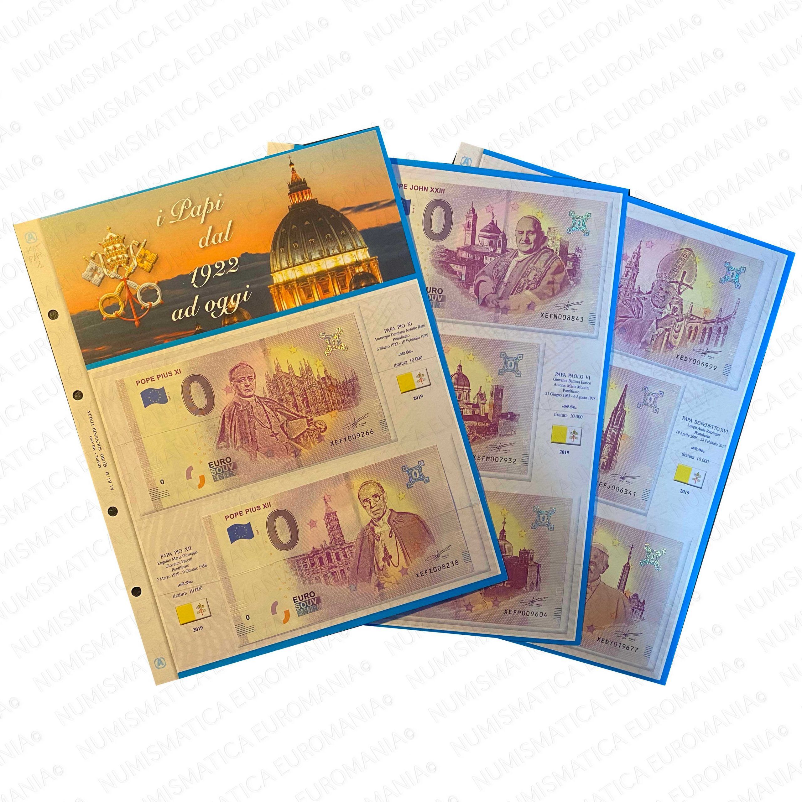 Kit Pagine per archiviare le banconote zero euro souvenir dei Papi Pontifici