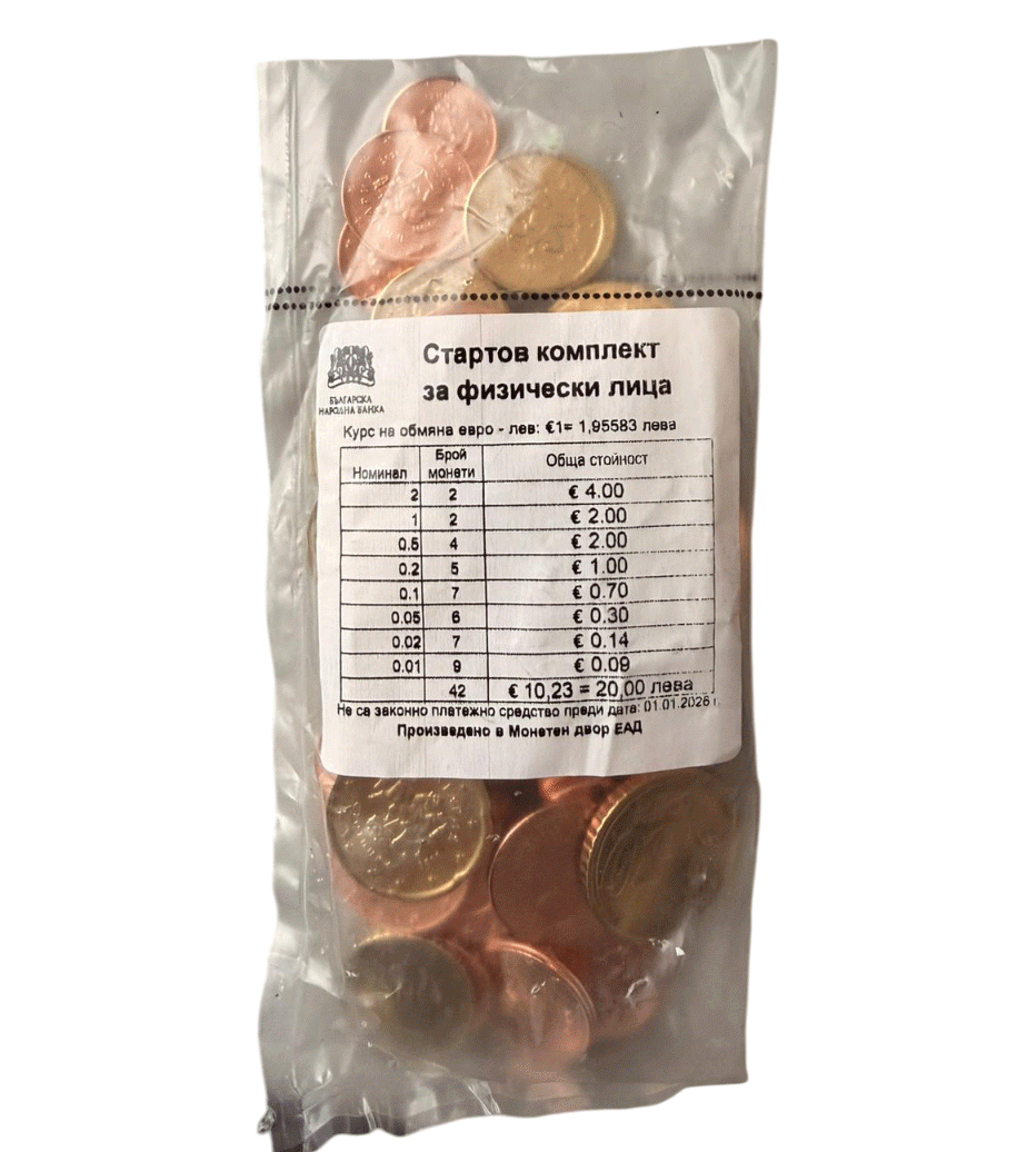Starterkit ufficiale della Bulgaria che contiene 13,28 euro di monete euro con il nuovo disegno delle monete della Bulgaria 2026.