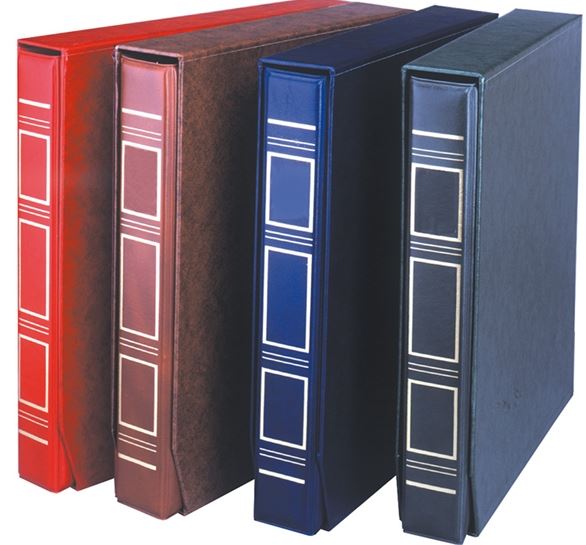 Raccoglitore in plastica stampato in oro ,con meccaniscmo a 24 anelli completo di custodia coordinata in cartone rivestito in skai disponibile in 4 colori.