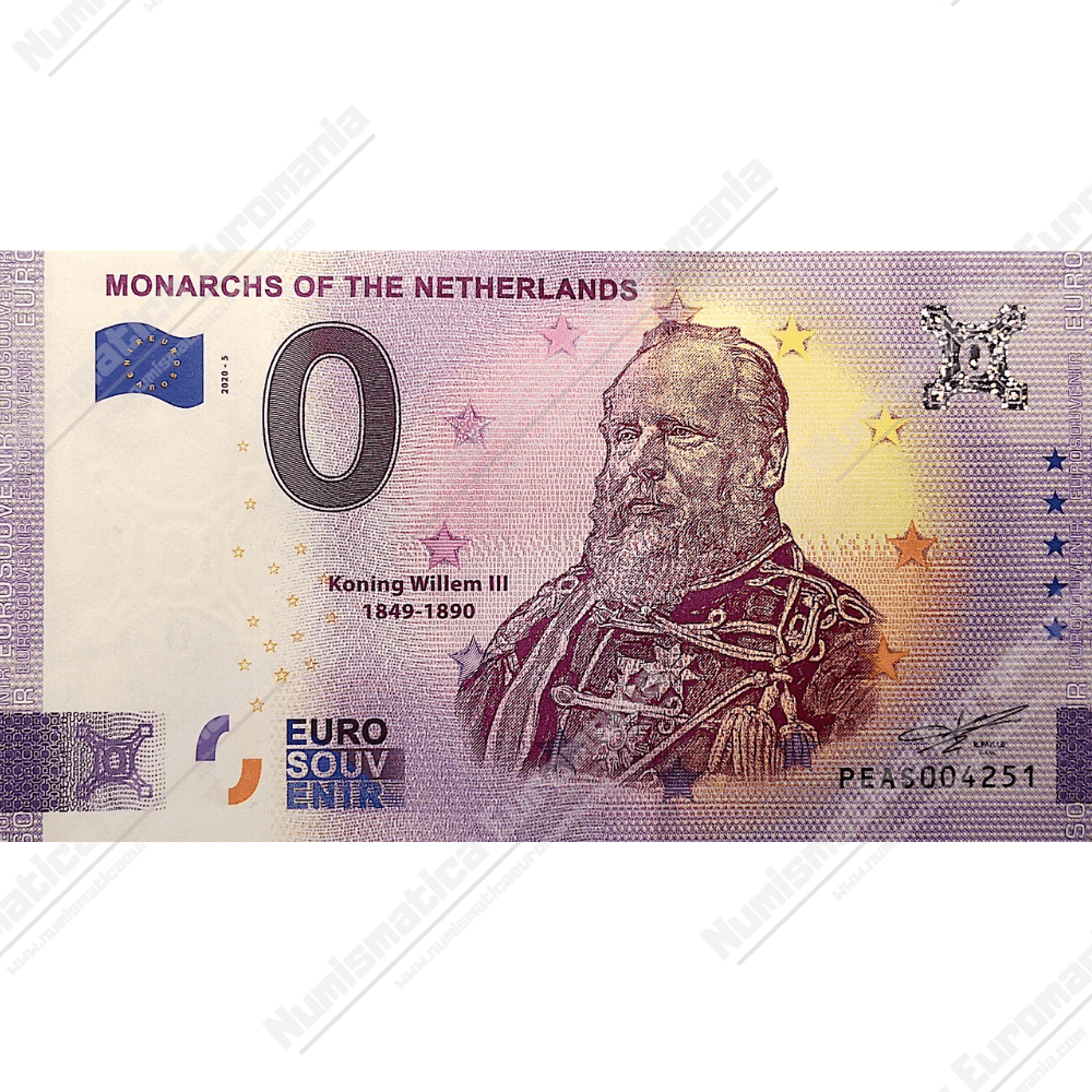 Banconota 0 Euro Souvenir Olanda “Monarchs of the Netherlands” –  Anniversary