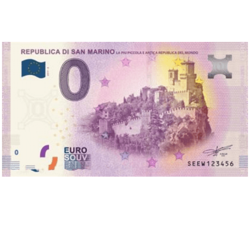 Banconota 0 Euro Souvenir dedicata alla Repubblica di San Marino.