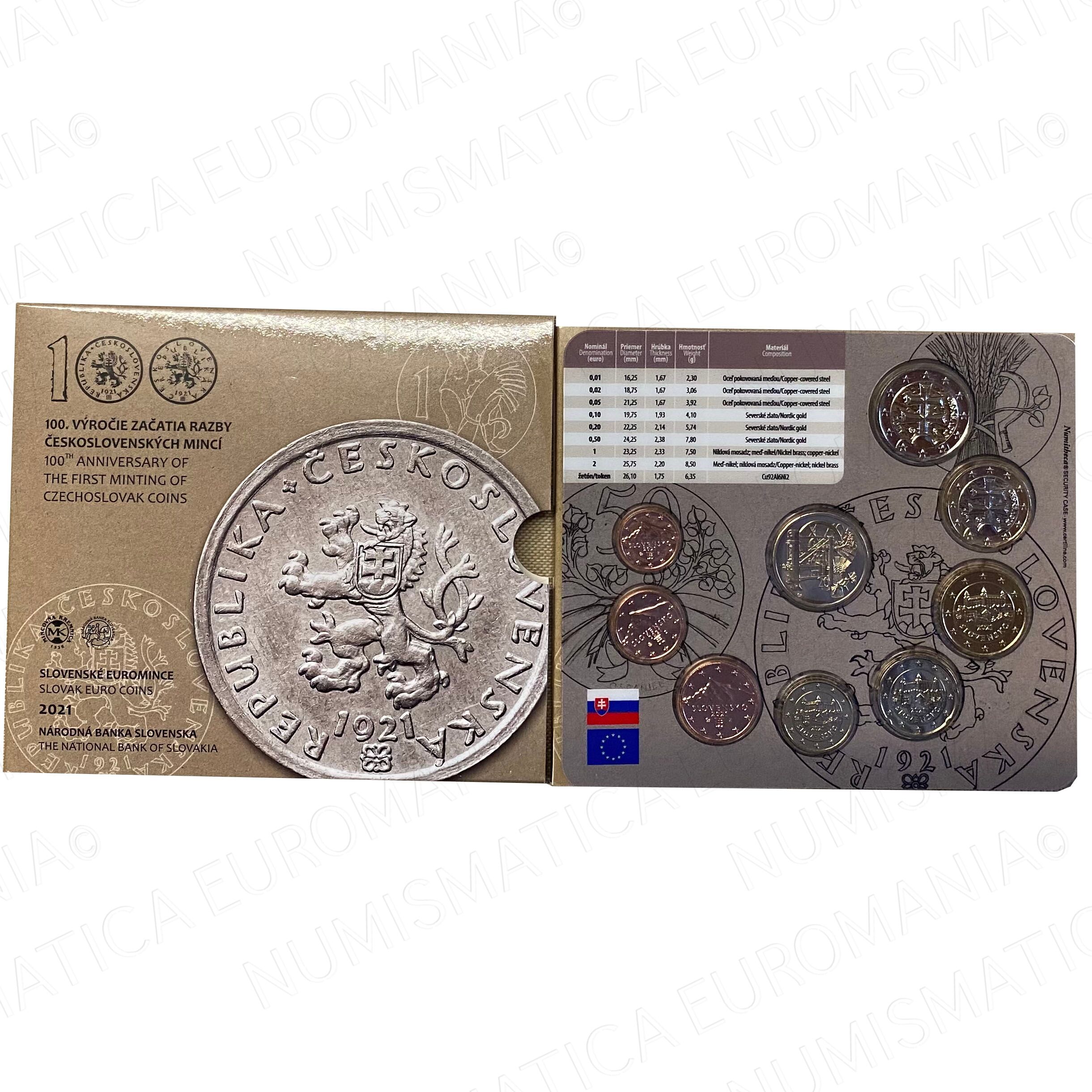 Serie ufficiale Slovacchia 2021 che contiene le 8 monete da 1 cent a 2 euro della Slovacchia 2021 + 1 medaglia commemorativa della zecca slovacca.